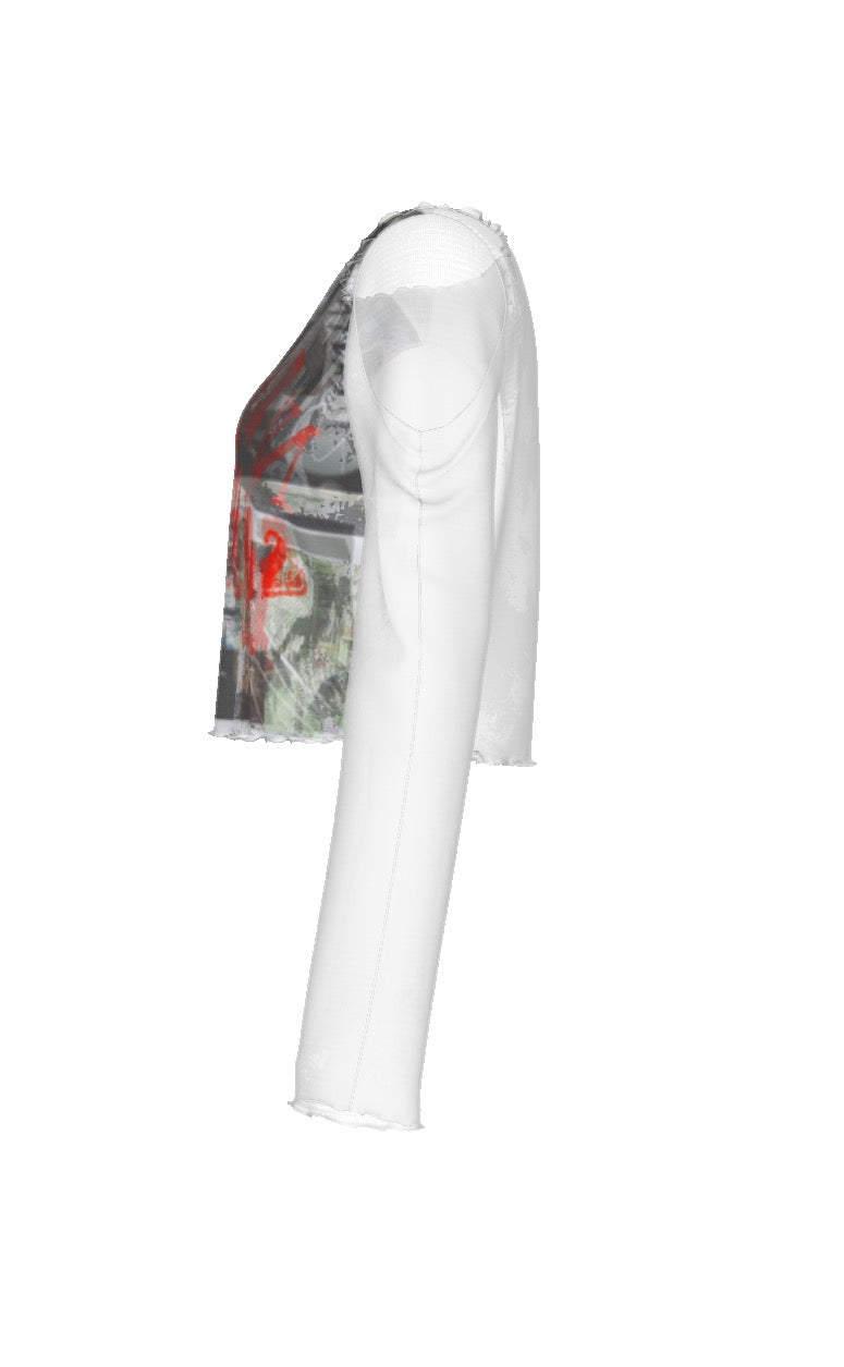 Mesh long sleeve tee; featuring album art from "NY, it was fun" by Sasha Atlas.
